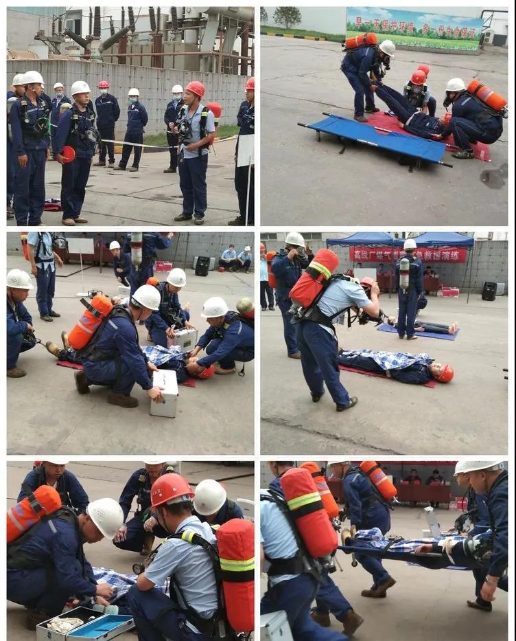 開賽前有高線廠應急救援隊演示團隊煤氣中毒應急救援演練。