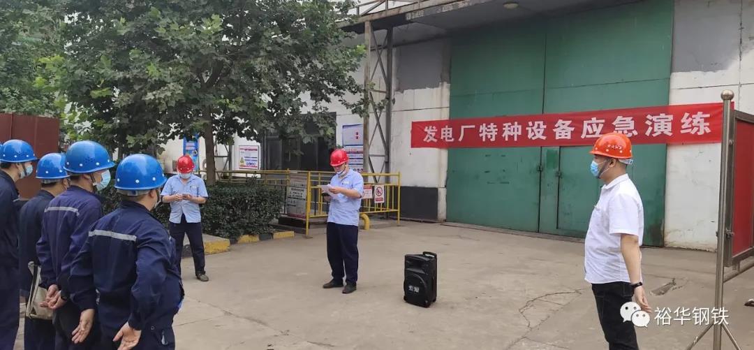 為加強特種設備安全管理,保障職工生命安全,有效控制特種設備事故的發生,提高應對突發事故的組織指揮、快速響應及處置能力,7月8日上午,裕華發電廠設備科在六期電廠組織開展特種設備專項應急演練活動,發電廠廠長賀江榮主持,安監處副處長趙文有、安全部特種設備管理員申李鑫現場觀摩指導。