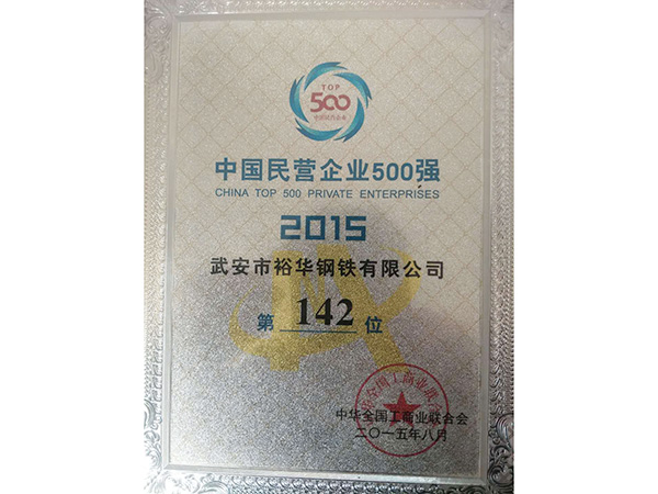 “中國民營企業制造業500強” 、“中國企業500強”、“中國企業制造業500強”。
